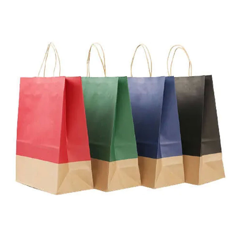 Túi mua hàng tái chế màu kraft do nhà máy tạo ra ở Xiyangyang với tay cầm giấy xoắn để mua sắm và gói quà. Sản phẩm của chúng tôi có sẵn trong nhiều màu sắc và tùy chọn tùy chỉnh để tăng thêm sự hấp dẫn cho bao bì của bạn.